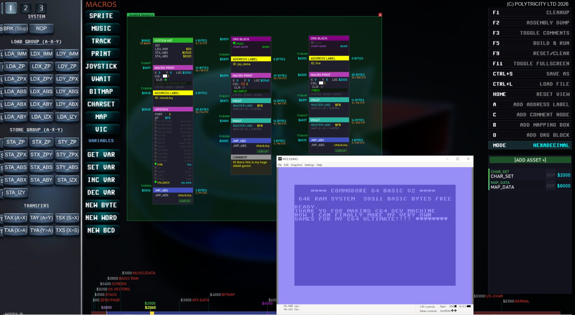 Stop fighting your code and start seeing it. My custom C64 dev tool turns 6502 Assembly into a visual, block-based powerhouse. It’s the organization of a modern engine meets the raw power of the Commodore 64. Logic nodes + 2D Space = Faster, more accessible C64 Dev.!